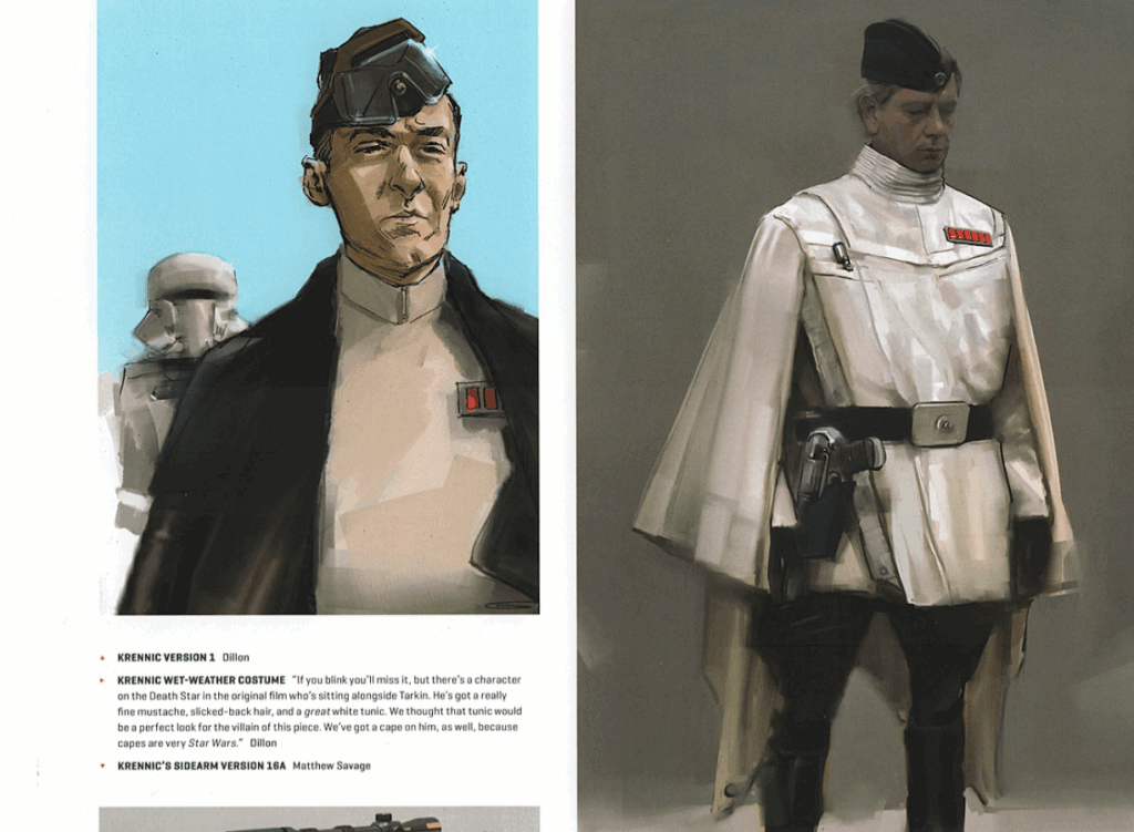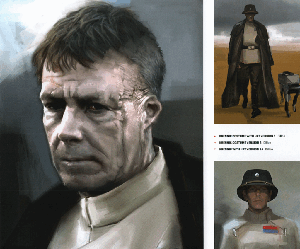 Krennicet eredetileg John Knoll alkotta meg egy soha el nem készült élőszereplős Star Wars sorozathoz. Először kettős ügynökként szerepelt Jyn csapatában, aki jelentéseket küldött a Birodalmi Biztonsági Hivatalnak, ott is a felettesének, Willix Cree-nek. Emellett a történet egyik korai befejezésében valahogy túlélte a scarifi támadást — ellentétben Ersóval és Cassiannal, csak hogy később Darth Vader kivégezze, amiért nem tudta megakadályozni a Halálcsillag terveinek ellopását. Ezt a változatot azonban végül elvetették, mivel az író nem tudott épkézláb magyarázatot adni arra, hogyan élhette volna túl Krennic az egész koncepciót. Ekkor még versengése és háttértörténete sem kötődött a fegyverhez elvileg, legalábbis kezdetben, így a Halálcsillag általi pusztulása kevésbé lett volna jelentős.