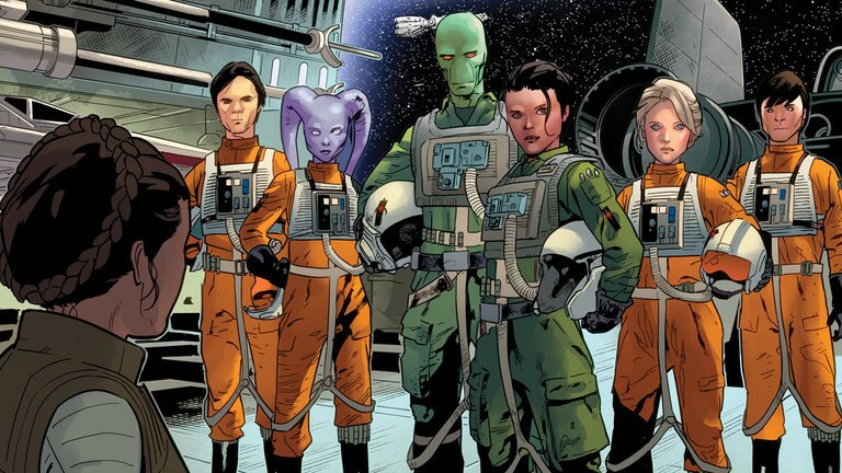 A Lázadás endori győzelmét követően az írott (és rajzolt) tartalmakban is több nem emberi pilótát találunk az Új Köztársaság, illetve később az Ellenállás kötelékében. A B-szárnyúakból álló Penge osztagban például egy togruta férfit (Jordan Karls) találunk, míg az Ellenállás sorozatból ismert Jarek Yeager egyik pilótatársa a jakkui csata idején egy rózsaszín bőrű twi’lek volt. Twi’lekek és duróiak mellett egyéb fajok fiai és lányai is felbukkannak. Az Alphabet osztagban szolgált a theelin Chass na Chadic, illetve Kairos, aki fajának neve egyelőre ismeretlen. Előbbi, és a szintén az ábécések közé kerülő Wyl Lark eredeti osztagaiban pedig például volt durói, nikto és ishi tib fajú pilóta is, míg a jakkui ütközetben az egyik osztagot Essovin, egy trandoshai nőstény vezette. S ha már Jakku, Wedge Antilles ebben az ütközetben egy bizonyos Fantom osztag vezetőjeként vett részt, melynek tagja volt a twi’lek Yarra, az alacsony kék szőrű narquois, Koko és a quarren Jethpur is.